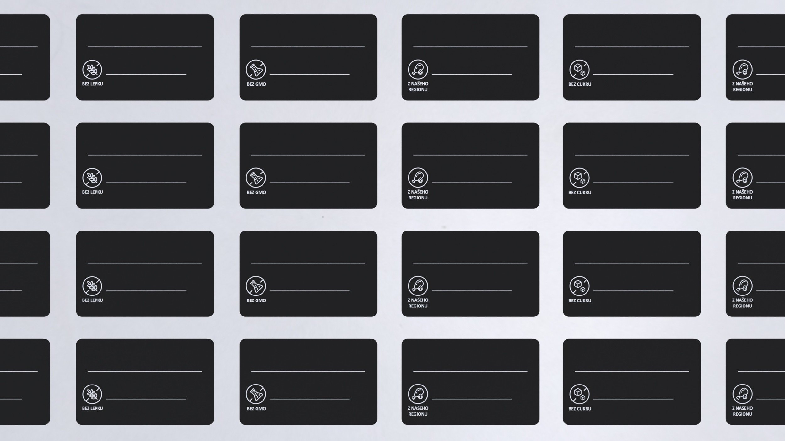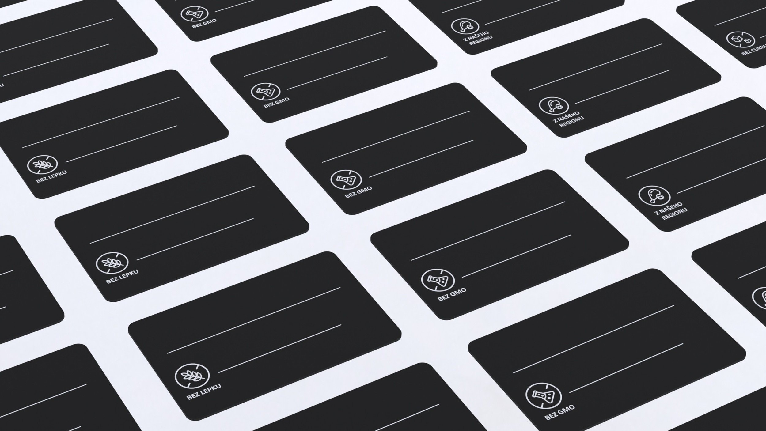Čierne cenovky PS s potlačou a zaoblenými rohmi