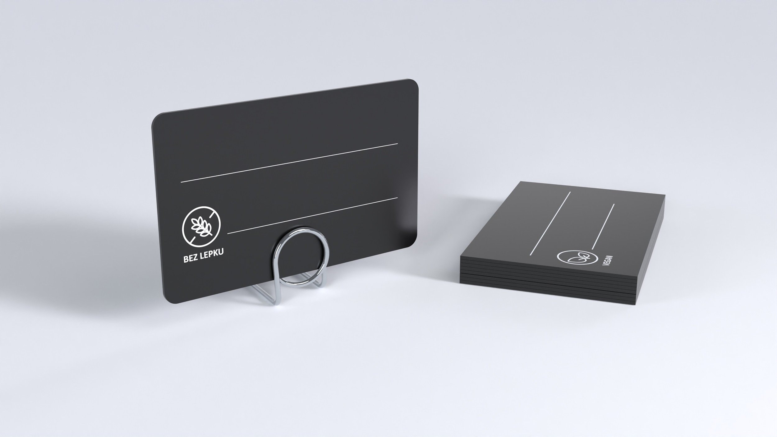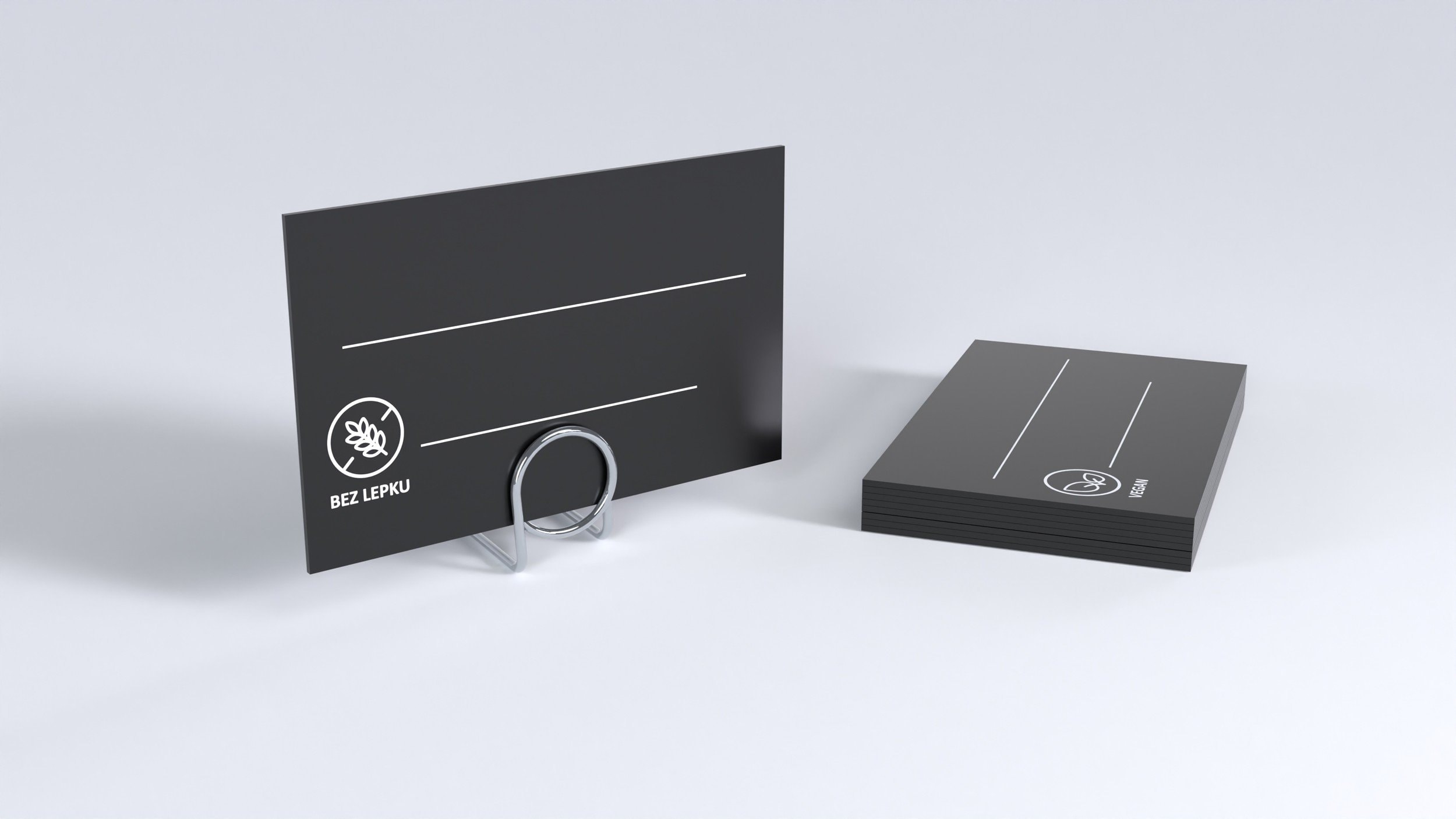 Ceduľky s potlačou z čierneho matného plastu vhodné na popis kriedovými popisovačmi.