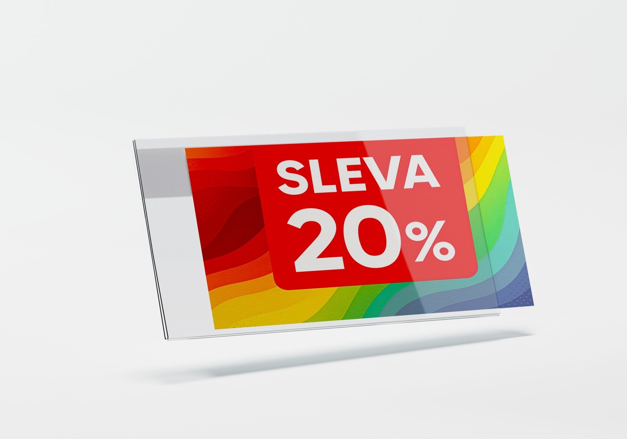 Samolepicí plastová kapsa s jedním ohybem z tenkého tvrdého plastu. Kapsa je určena pro vložení štítku, letáku, cenovky nebo popisky. Kapsy vyrábíme z tvrdé PVC nebo PET fólie od německého výrobce Klöckner Pentaplast s lesklým nebo matným (antireflexním) povrchem. Použitá tloušťka materiálu 0,4 - 0,7 mm, dle velikosti. Matný povrch je odolnější proti poškrábání. Kapsy jsou opatřeny bílou oboustranně lepicí pěnovou páskou IFG2900. Páska IFG2900 odolává i vyššímu namáhání a je vhodná pro trvanlivé aplikace na většinu povrchů. Páska dobře kopíruje povrch a je vhodná i pro strukturované, nehladké povrchy. Na přání Vám kapsy vyrobíme v individuálním provedení, z jiného materiálu nebo s libovolným typem lepicí pásky. Kapsa má standardně jeden samolepicí pásek, pokud požadujete dva samolepicí pásky, napište požadavek do poznámky v objednávce nebo do e-mailu. Nakupujete u výrobce